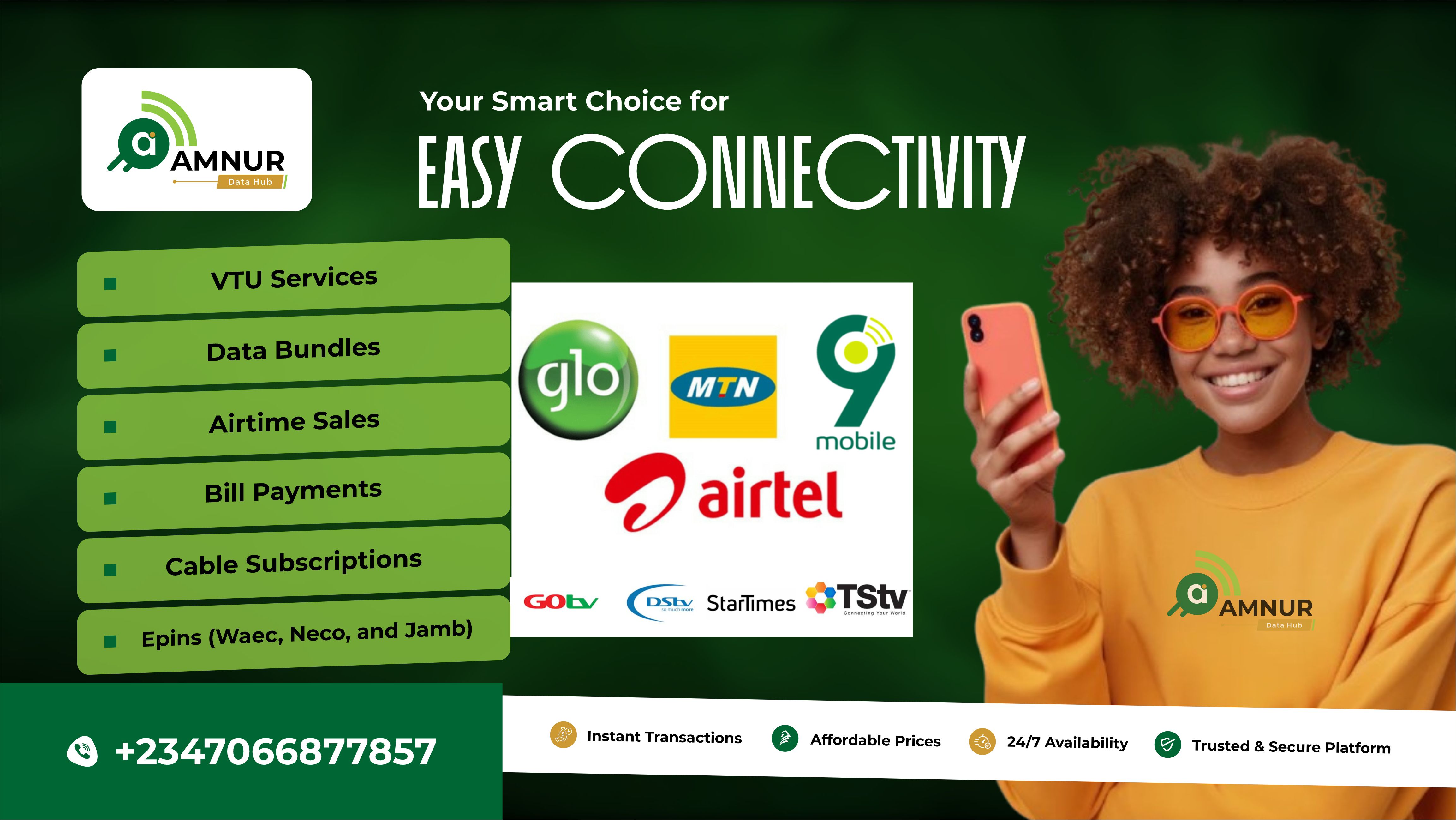 At Amnur Datahub, we are committed to providing fast, secure, and affordable VTU services.